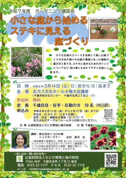 会場:公益財団法人ちとせ環境と緑の財団事務所前花壇