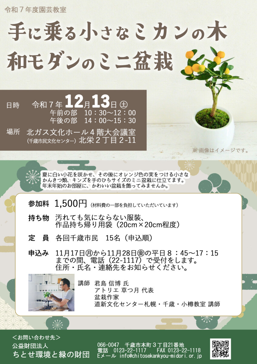 園芸教室「手に乗る小さなミカンの木 和モダンのミニ盆栽」を開催します!